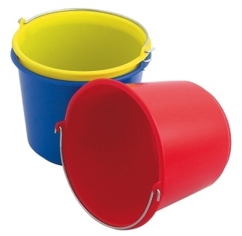 Seaux en plastique renforcé, avec une anse en métal.