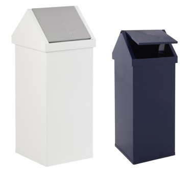 Poubelle en aluminium ou en inox, avec un couvercle basculant.