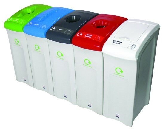 Poubelle de tri, modèle midi. Robuste, élégante et compacte, en polyéthylène (MDPE) gris clair ou noir, résistant aux ultra-violets.