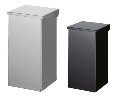 Poubelle en aluminium thermolaqué, avec un couvercle avec charnières, à fermeture amortie (= silencieux). Résistant au feu.