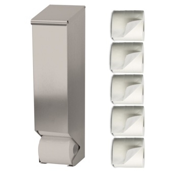 Boîtier mural pour 4 à 6 rouleaux de papier wc traditionnels de réserve.