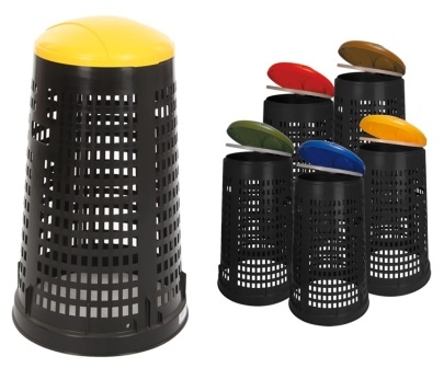 Pourvue d'un support de sac intégré et d'un couvercle de couleur.