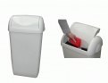 Poubelle en plastique blanc. Avec un couvercle ouvert ou un couvercle basculant. A poser ou à suspendre.