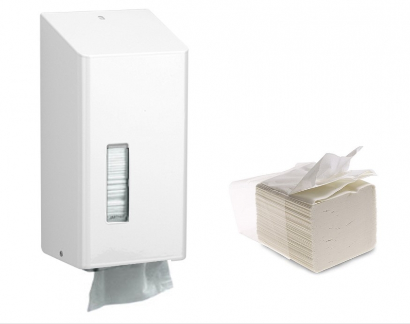 Distributeur pour du papier hygiénique en feuilles enchevêtrées.
