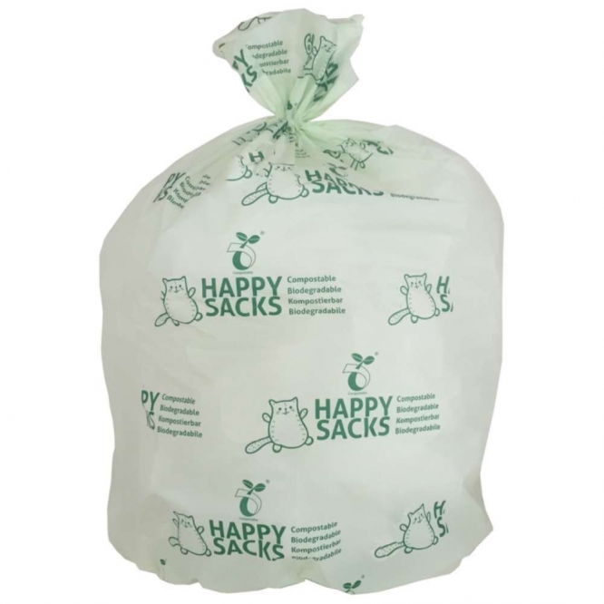 Sacs blancs, semi transparent, avec "Happy Sacks" imprimé en vert