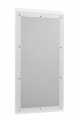 Miroir anti vandalisme, en acier inoxydable super brillant. Dans un cadre sans angles vifs et dont le dessus est incliné (ce qui empêche toute suspension d'objet ou de corde).