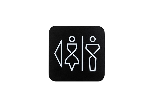 Pictogramme " Toilettes Dames + Hommes, avec flèche vers la gauche"