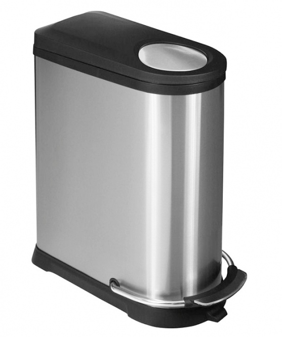 Met gedempt kunststof deksel, kunststof binnenemmer en stevig metalen pedaalsysteem.