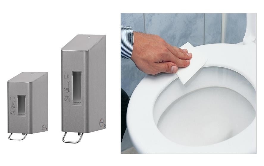 Toiletbrilreinigerdispenser met navulreservoir van 250 of 600ml. Te gebruiken op toiletpapier.