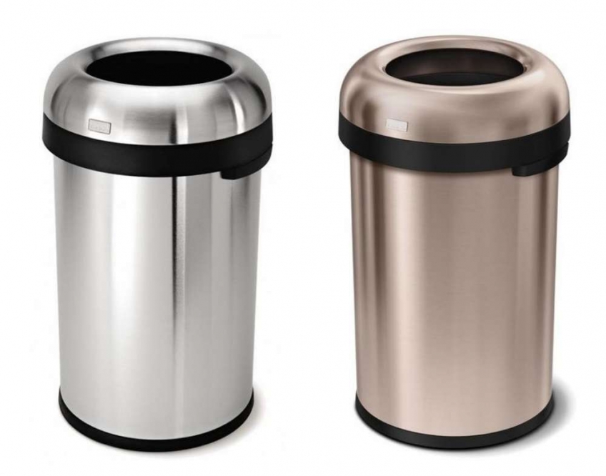 Stijlvolle ronde afvalbak met een open deksel. Grote capaciteit.