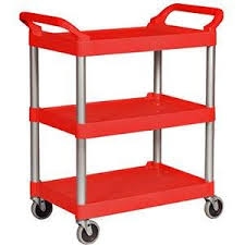 Open materiaalwagen voor licht gebruik, met krasbestendige polypropyleen schappen en ergonomische handgreep.