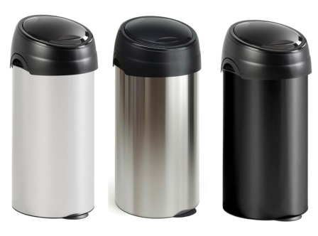 Ronde metalen afvalbak met touchdeksel. Kunststof top met zakhouder.