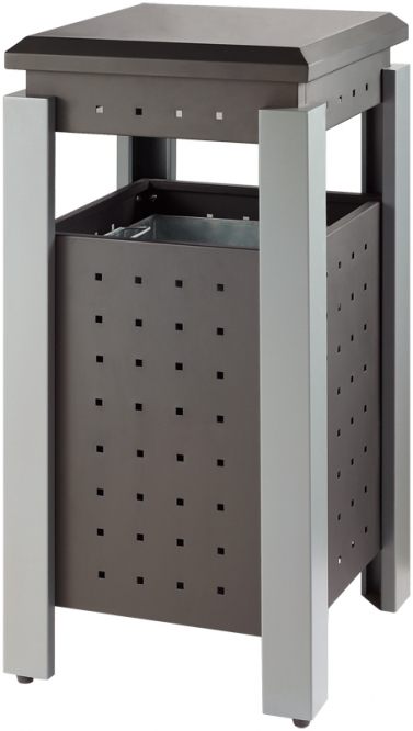 Vierkante buitenafvalbak van gepoedercoat staal.