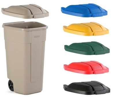 Mobiele container basis van polypropyleen, met ergonomische handgrepen. De verzonken wielen besparen ruimte. Scharnierend deksel in diverse kleuren leverbaar (apart bestellen).