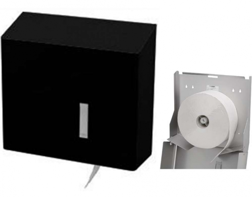 Dispenser voor een rol jumbo toiletpapier tot een diameter van ca. 330mm.