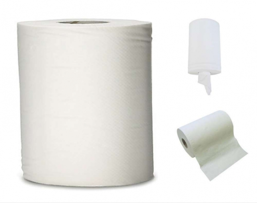 Papieren rol op 2 manieren te gebruiken: vanuit het midden van de rol (bij verwijdering van de kartonnen huls) of gewoon af te rollen langs te buitenzijde van de rol.