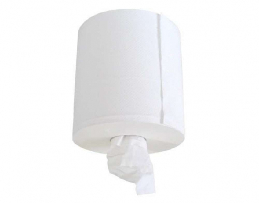Papierrol met centrale afwikkeling. Rol zonder kartonnen huls, meteen gebruiksklaar