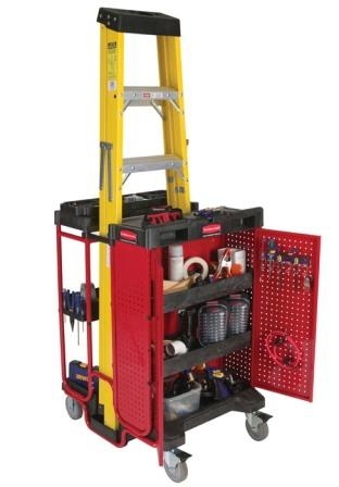 De stand van de ladder, in het midden van de kar, zorgt voor stabiliteit, veiligheid en voorkomt schade aan muren en deuren.