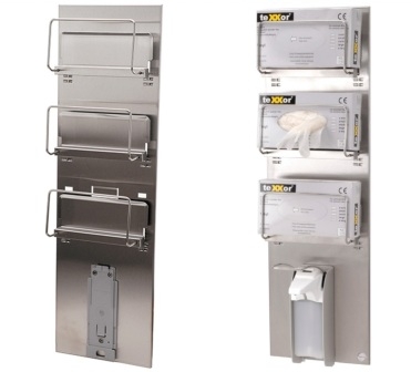 Support mural, en acier inoxydable brossé, pour 3 boîtes de gants (non comprise).