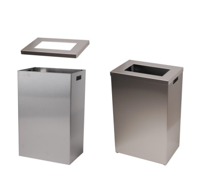 Poubelle, sans couvercle, en acier inoxydable brossé. A poser ou à suspendre.