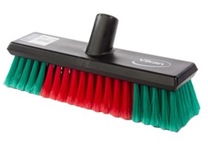 Brosse avec passage d'eau. Fibres souples / fleurées. Embout fixe. Spécialement adaptée aux grandes surfaces. Idéale pour les bus et camions.