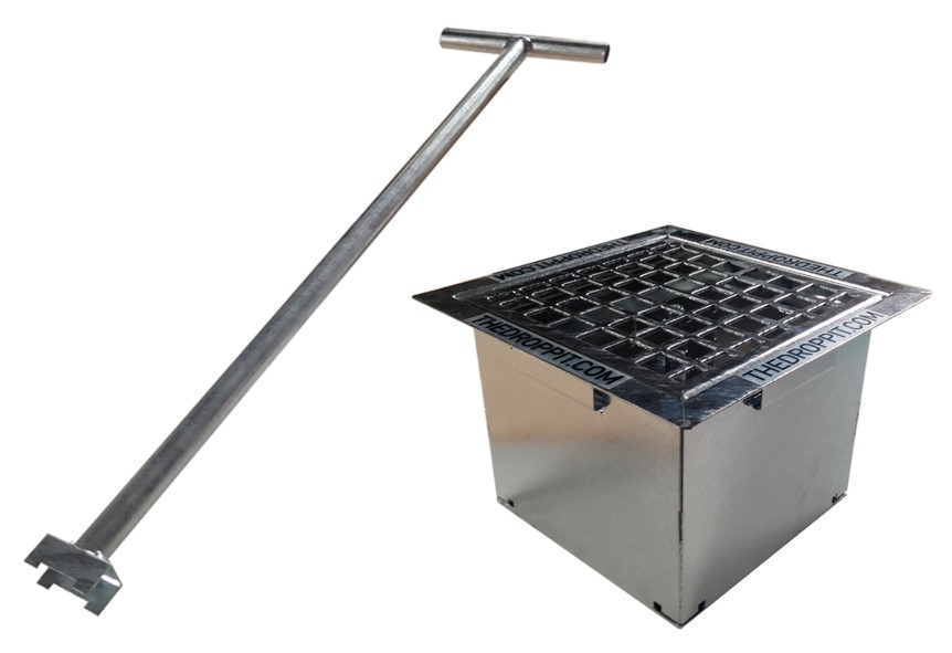 Cendrier pourvu d'une grille. Ouverture et vidage facile, rapide, hygiénique et ergonomique à l'aide de la clef confort (La clef universelle pour tous les modèles DropPit Confort est à commander séparément).