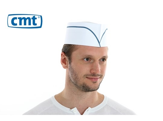 Fouragemuts in papier wit met blauwe lijn