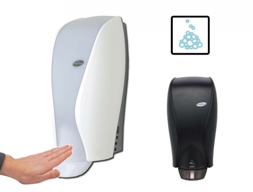 Keuze tussen een geparfumeerde schuimzeep (Ecolabel) of een desinfecterende reinigende schuim (te gebruiken met of zonder water).