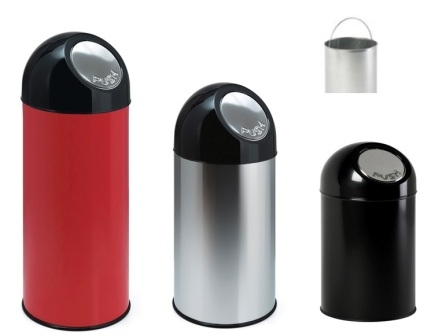Onderbak in metaal, tot in zwart kunststof met rvs pushdeksel. Met verzinkte binnenemmer.