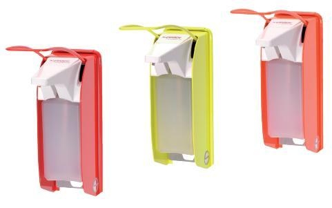 Met glanzende signaalkleuren treft deze ingo-man dispenser direct alle aandacht en herinnert zo in medische inrichtingen actief aan de belangrijke handontmetting.