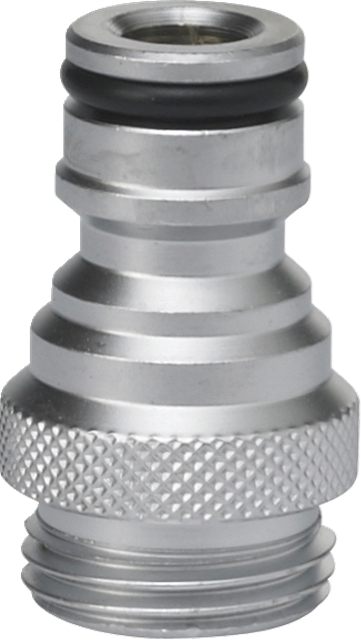 De adapter maakt verbinding mogelijk tussen Vikan binnendraad en een slang met Gardena-koppeling.
