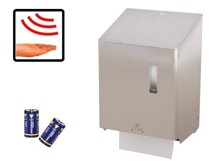 No-Touch snijhanddoekautomaat in rvs. Voor 1 rol snijhanddoekpapier.