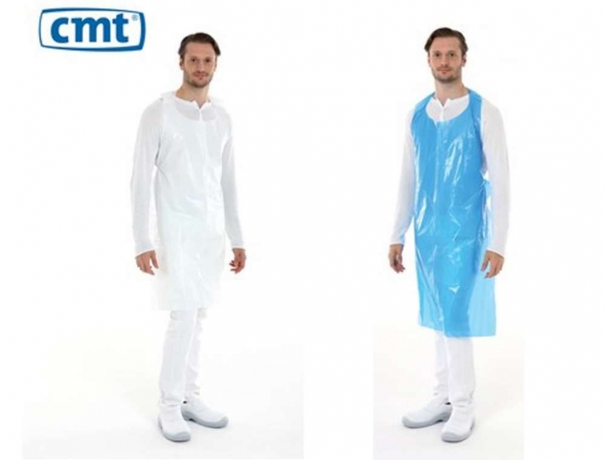 | T901014 | Schort PE, op rol, 110x70cm, 20 micron, wit (5x100) | |