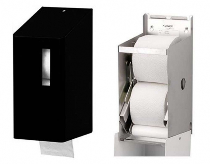 Dispenser voor 2 traditionele rollen toiletpapier.